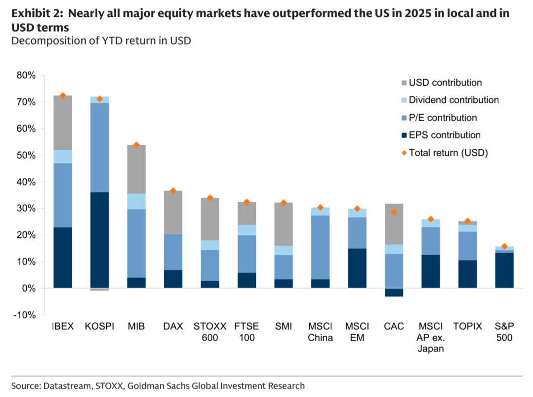 In 2025, the US market underperformed in USD terms the rest of the world, for the first time in 16 years.